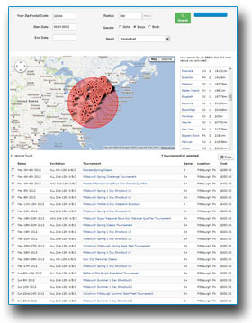 We have tried to provide easy to use tools for helping Coaches research listed Tournaments and events in order to set up a schedule for their upcoming season.